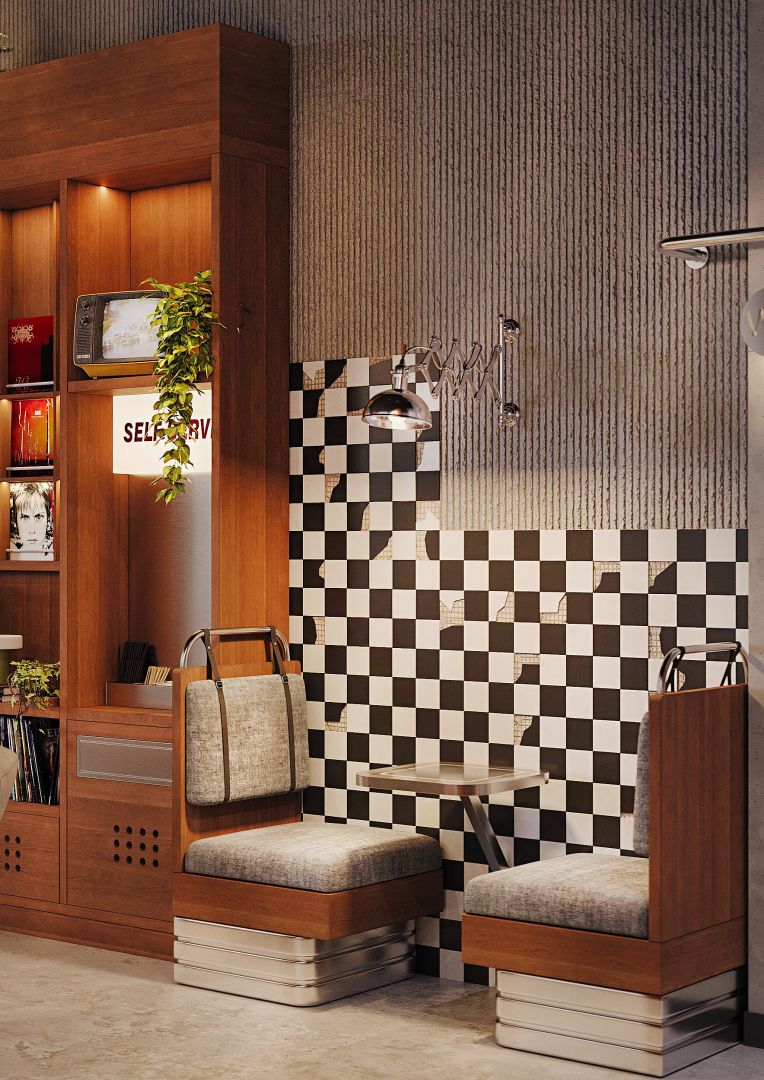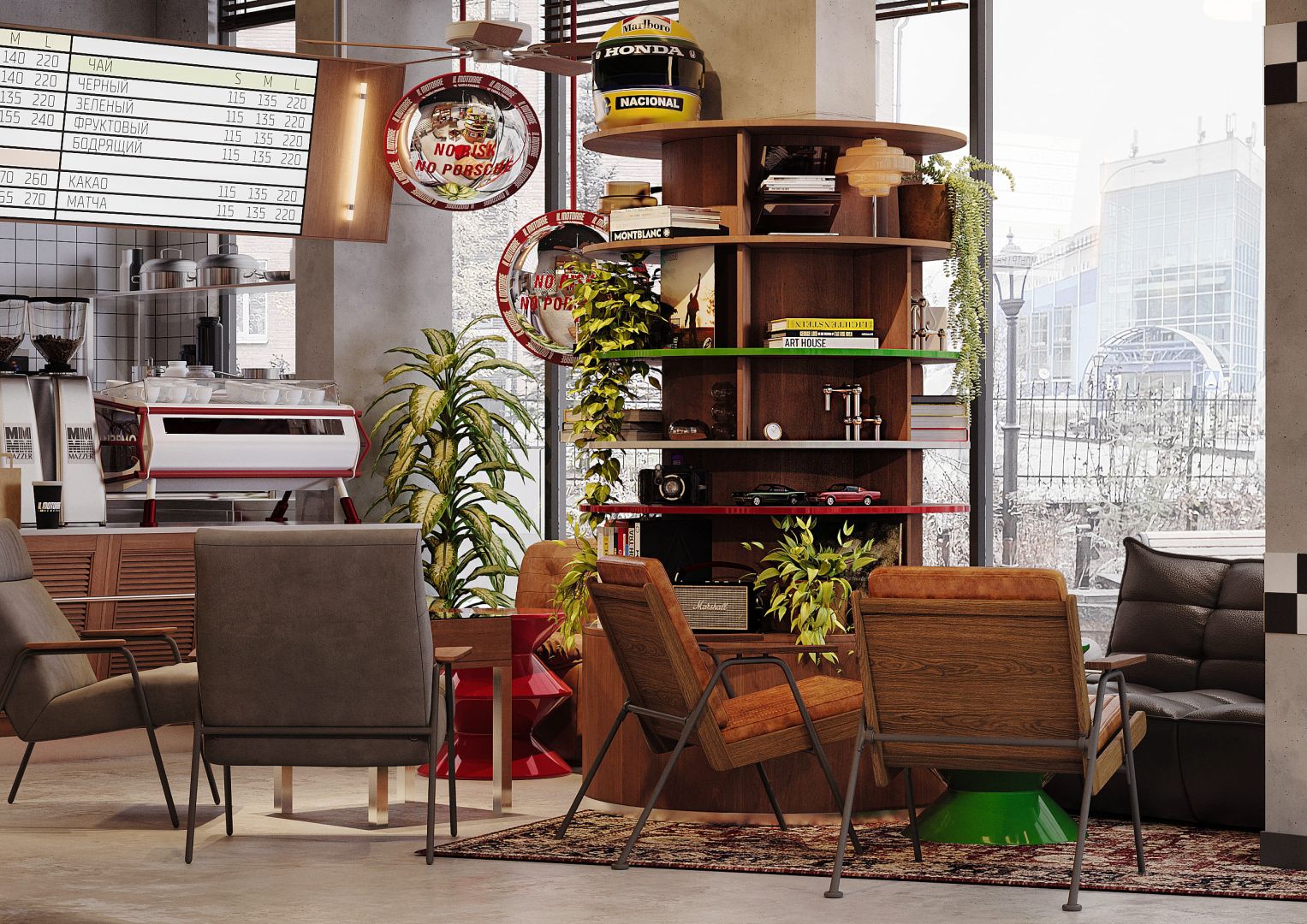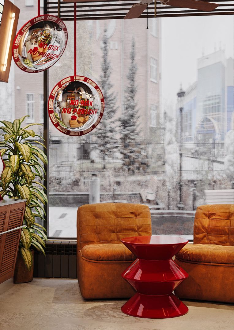 Новая концепция для сети IL MOTORRE. Все помещение пропитано духом свободы, гонок и яркой Италией! Мы провели идеологию через каждый предмет в этой кофейне и завязали все в одну сильную историю.