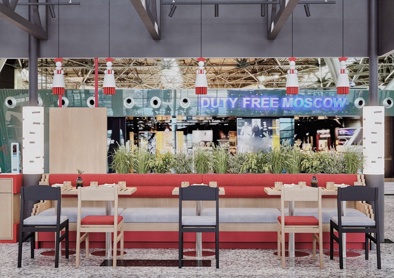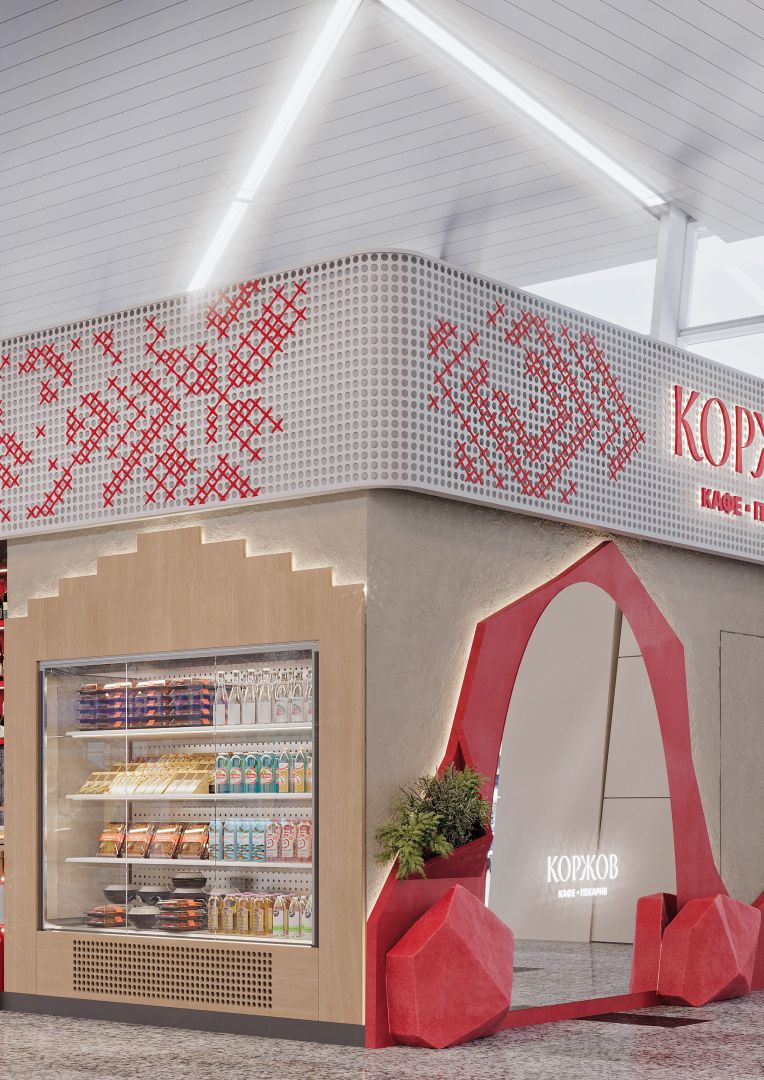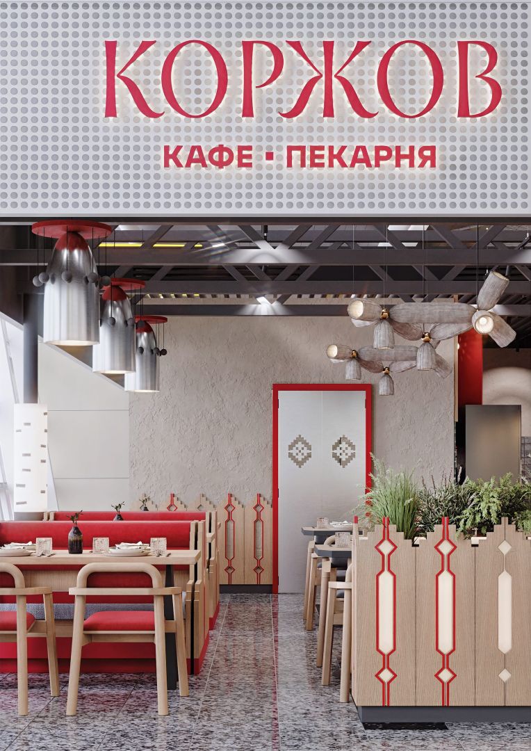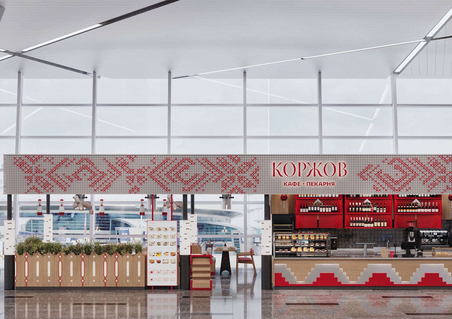 Это кафе-пекарня под названием «КОРЖОВ», расположенная в аэропорту Внуково, оформлена в современном и одновременно этническом стиле. Вот ключевые особенности этого заведения: