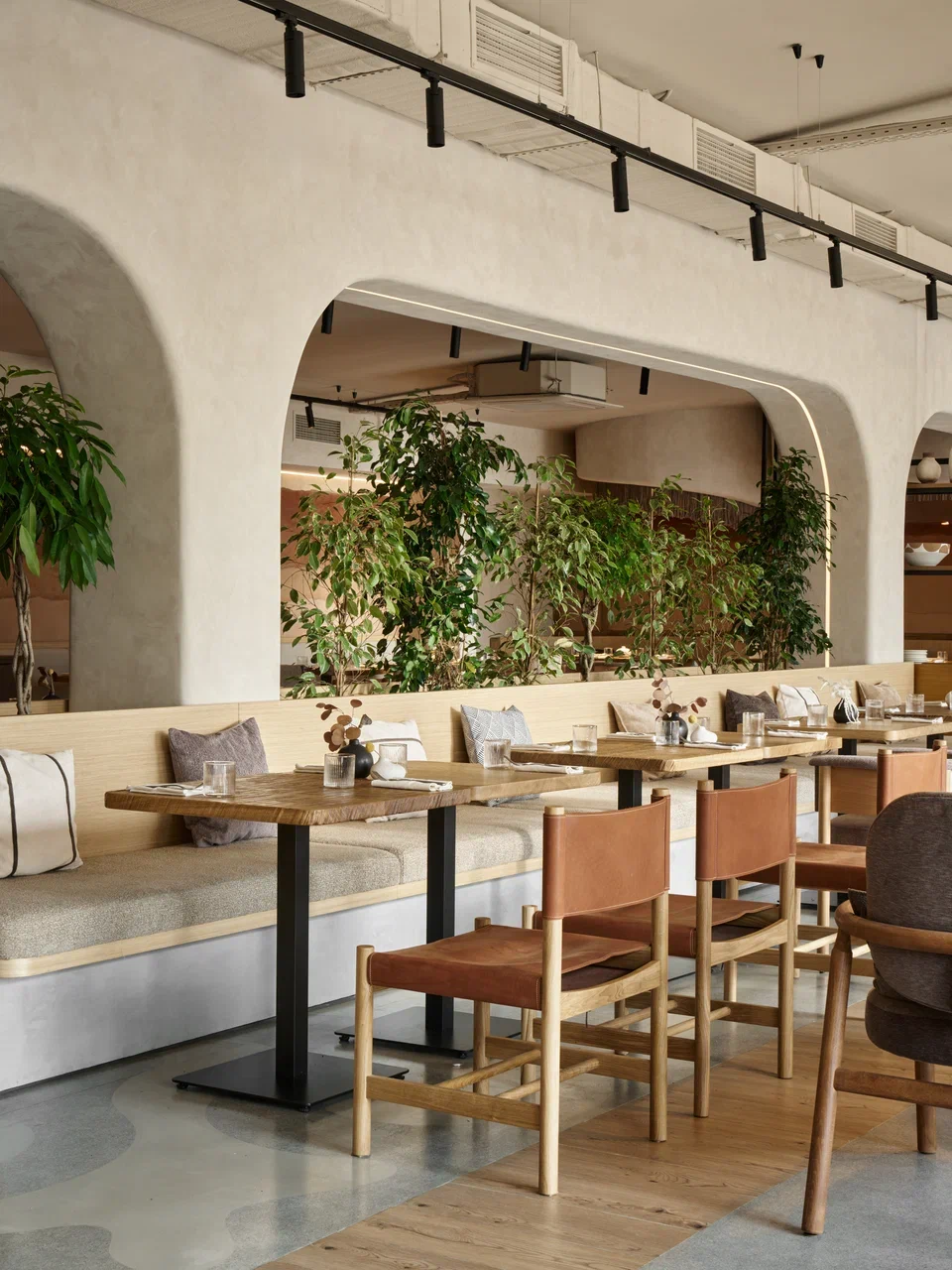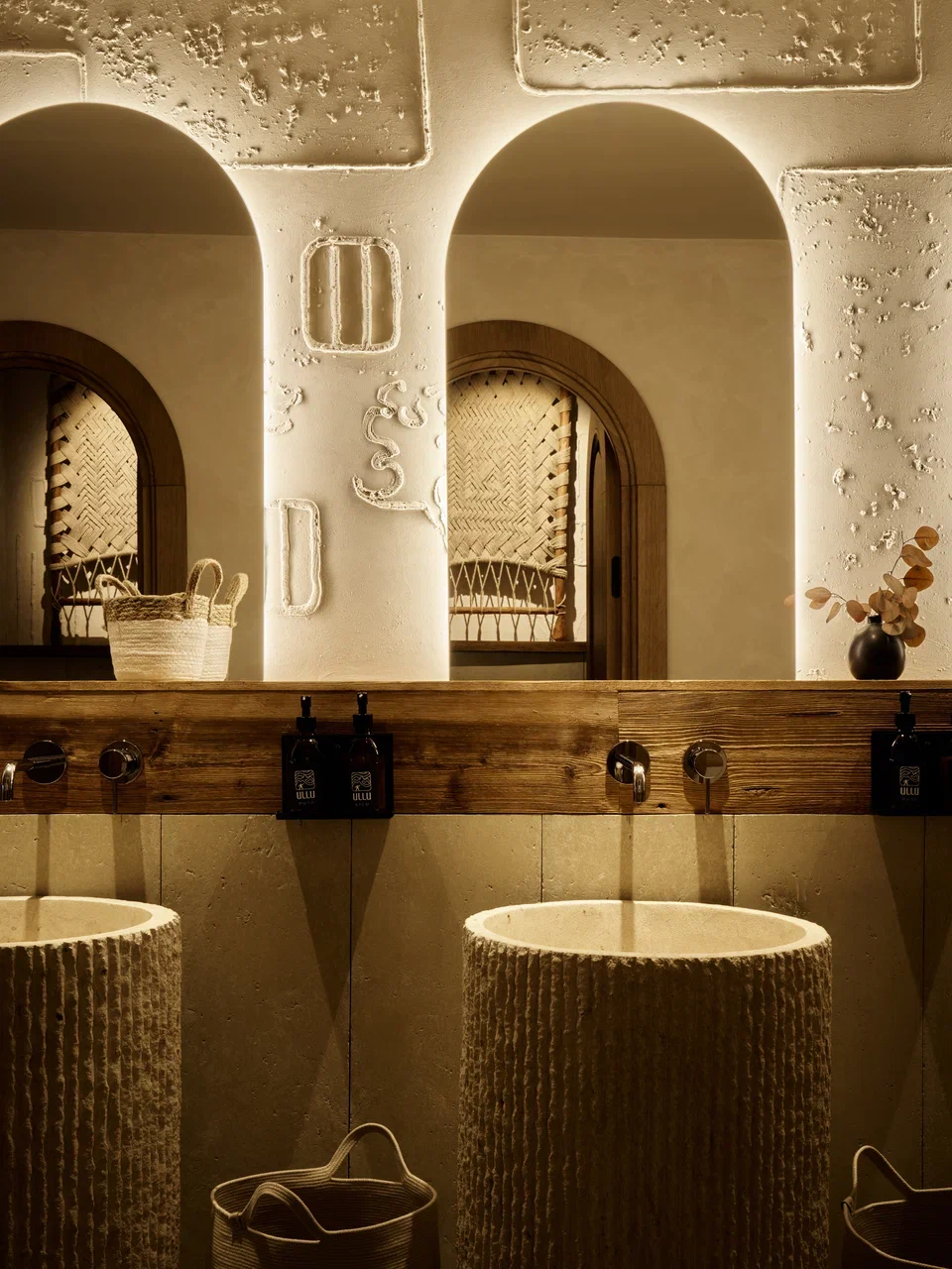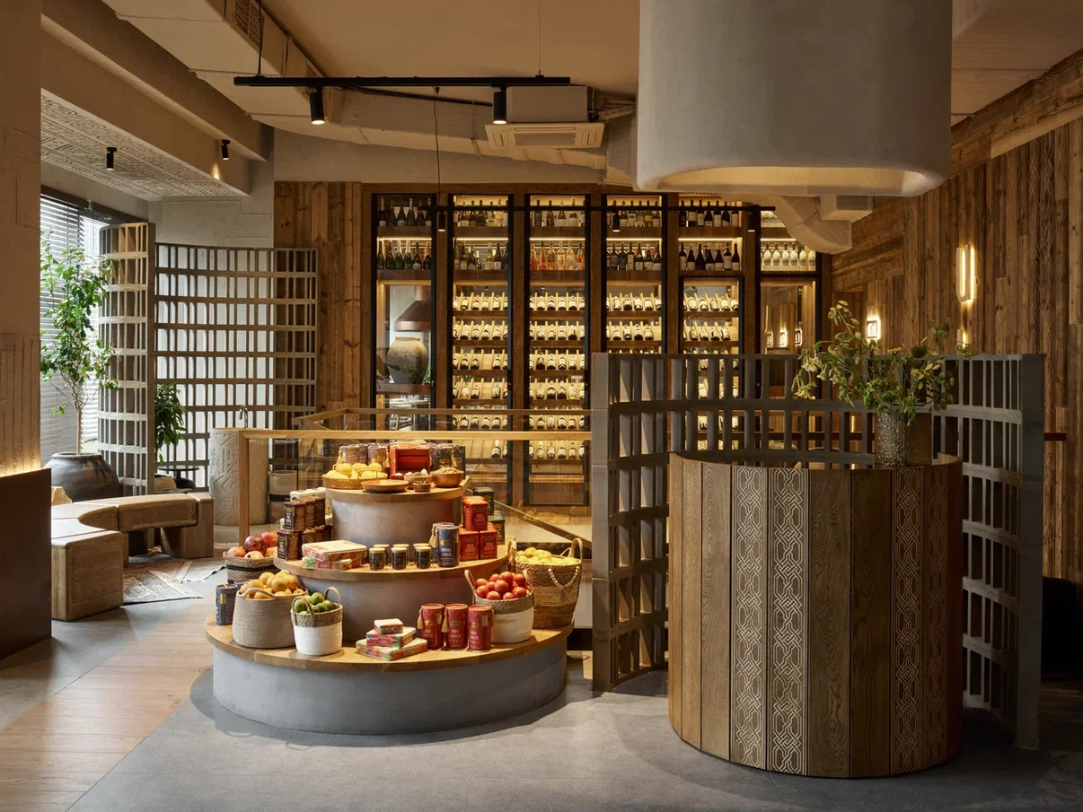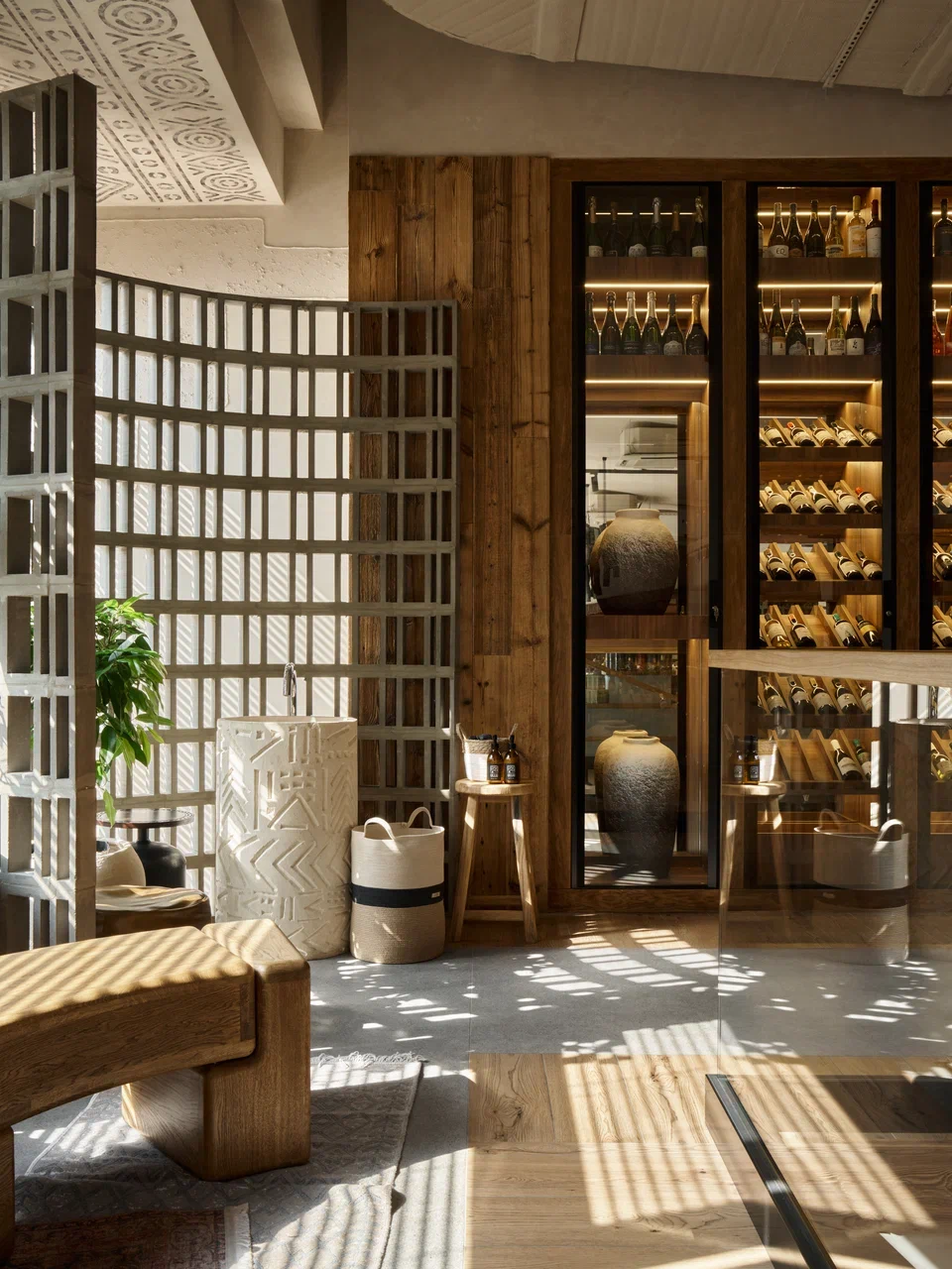 Пространство культурного погружения, наполненное уютом и традициями, где в каждой детали сочетаются эстетика, функциональность и тепло: от приглушённых оттенков, до мягкого света, преломляющегося о фактурное дерево, камень и ткани ручной работы. Текстильные элементы, вдохновлённые национальными мотивами, добавляют пространству душевности, а использование натуральных материалов — дерева, керамики, бетона — словно переносит гостей в аутентичный горный дом, где ощущается сердечное тепло и связь с природой. Интерьер живой и тактильный, пробуждающий чувства и создающим атмосферу полного расслабления.