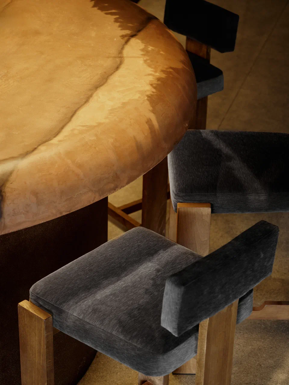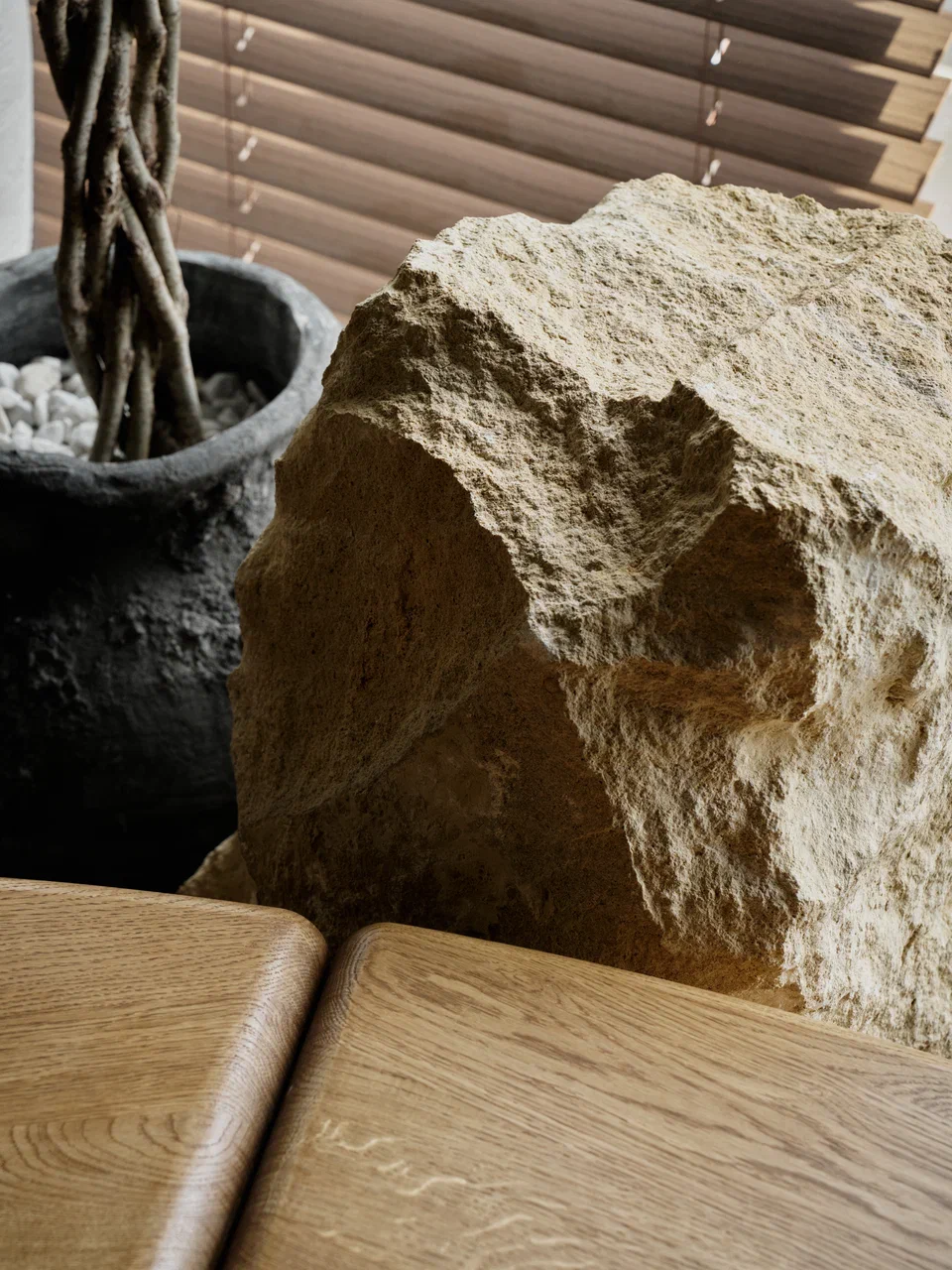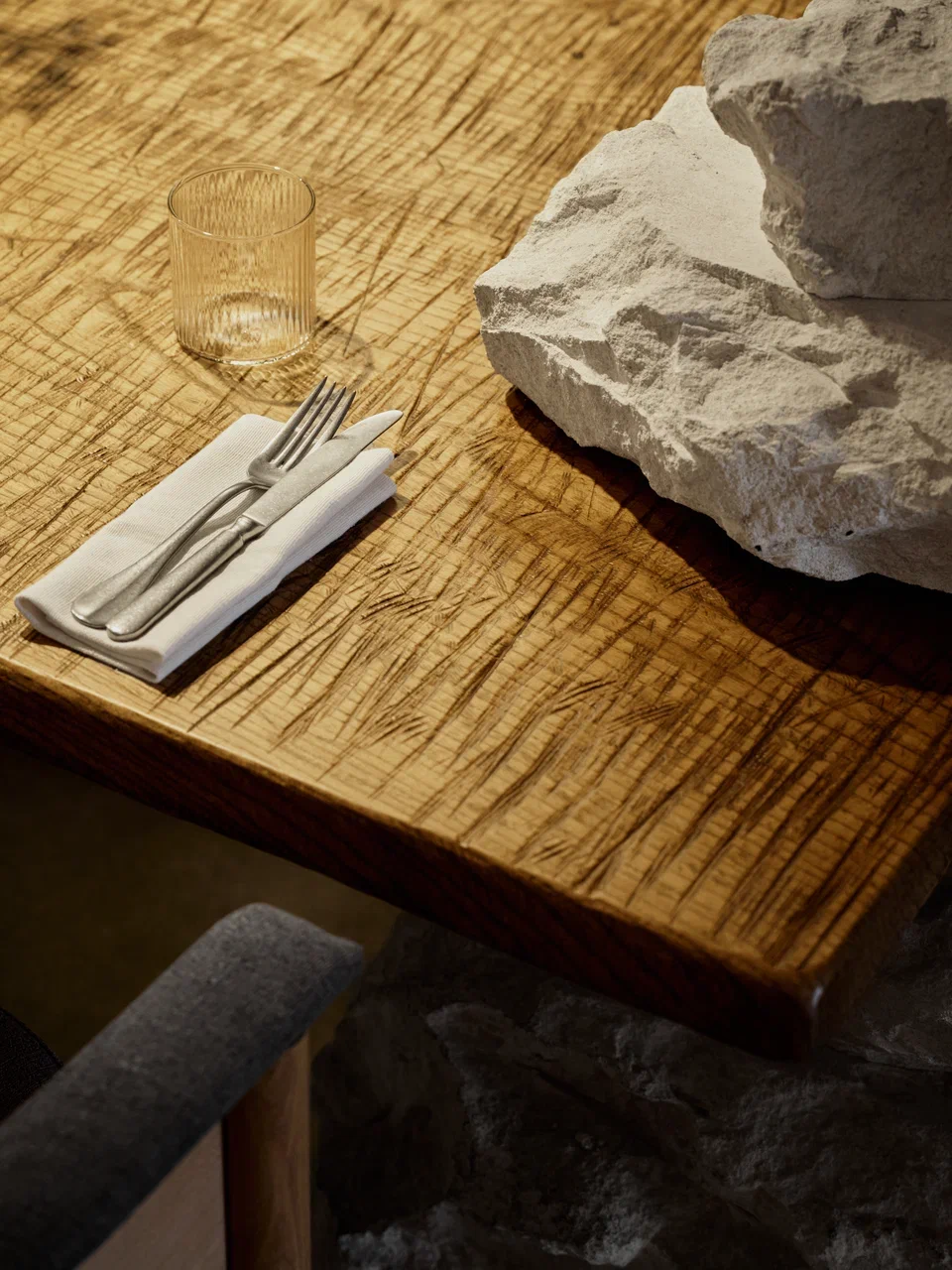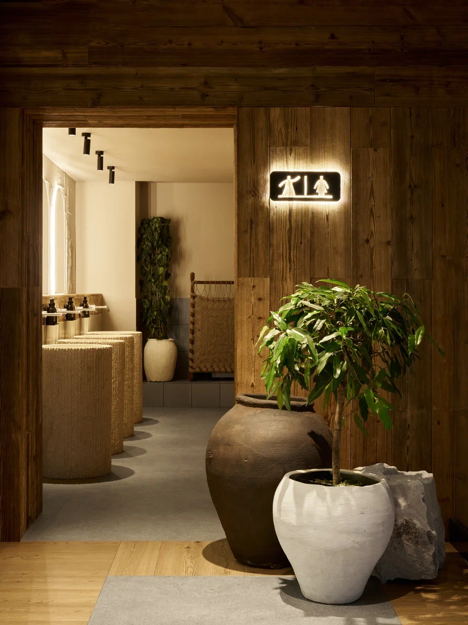 Пространство культурного погружения, наполненное уютом и традициями, где в каждой детали сочетаются эстетика, функциональность и тепло: от приглушённых оттенков, до мягкого света, преломляющегося о фактурное дерево, камень и ткани ручной работы. Текстильные элементы, вдохновлённые национальными мотивами, добавляют пространству душевности, а использование натуральных материалов — дерева, керамики, бетона — словно переносит гостей в аутентичный горный дом, где ощущается сердечное тепло и связь с природой. Интерьер живой и тактильный, пробуждающий чувства и создающим атмосферу полного расслабления.