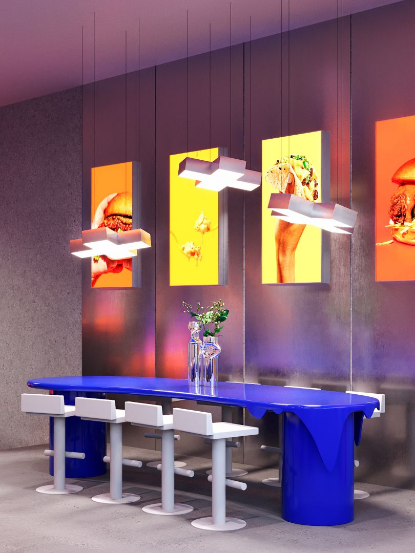 Современная, яркая донерная в Турции. Нам досталось очень сложное многоуровневое и вытянутое помещение, которое мы постарались обыграть в нашу пользу. В зоне перепада высот спроектировали посадку лесенкой, а каждую посадочную зону наполнили арт-объектами. В интерьере использовали много нержавеющей стали, бетона и меде экранов. Основу концепции выстроили вокруг капель, как отсылку к соусам в сочных блюдах.