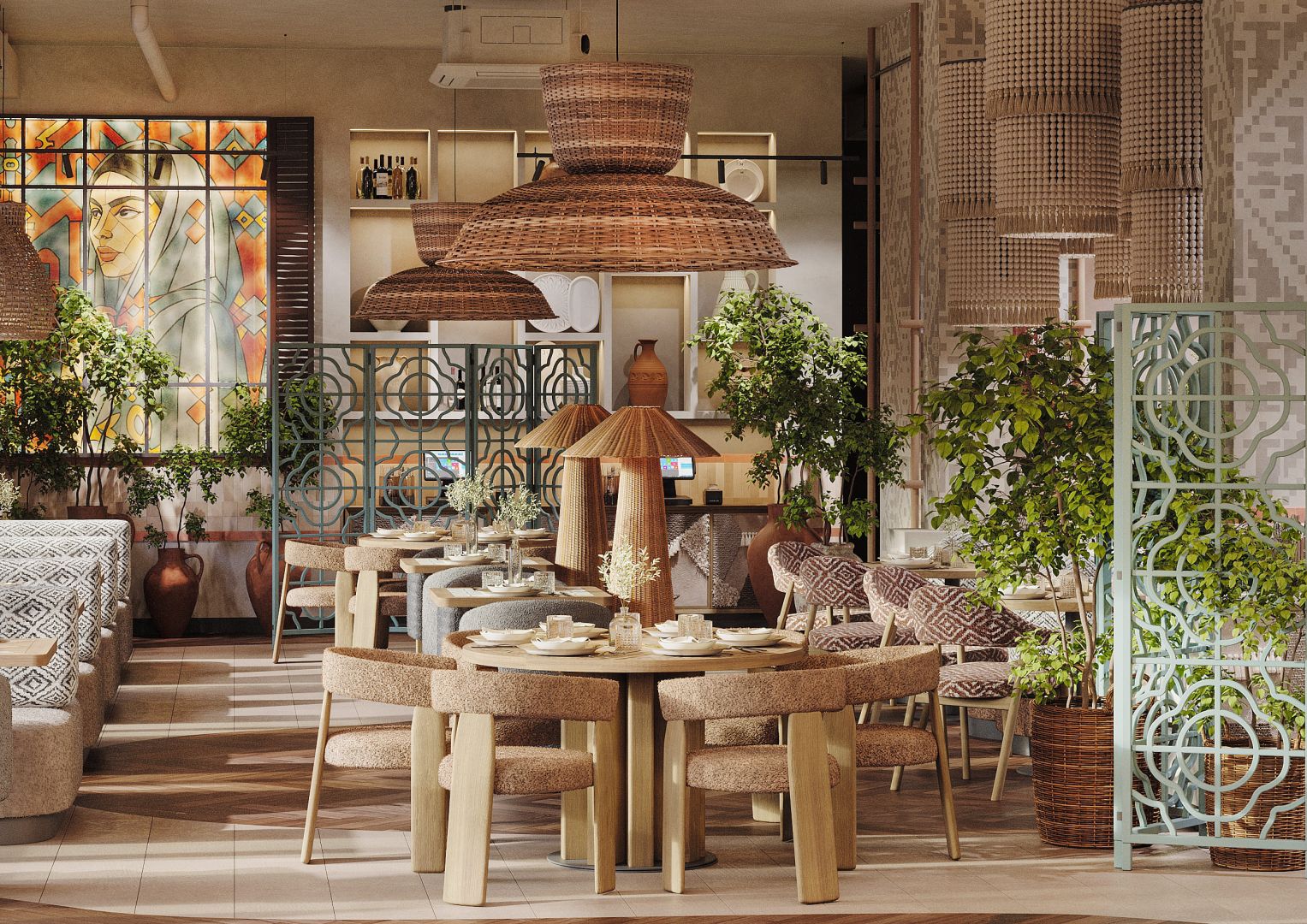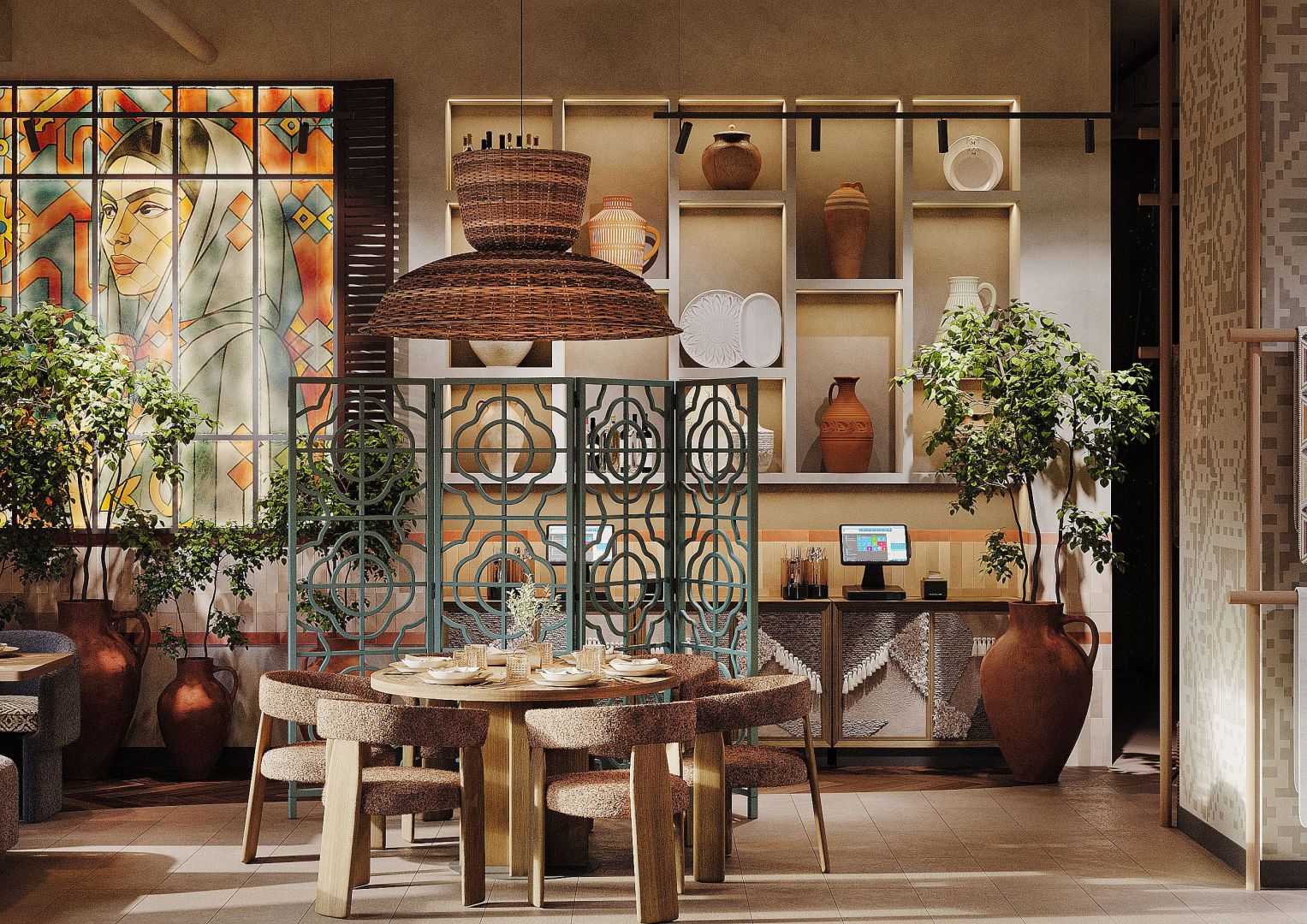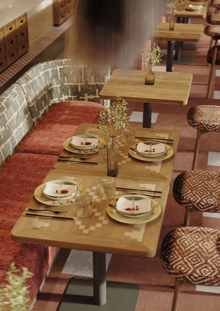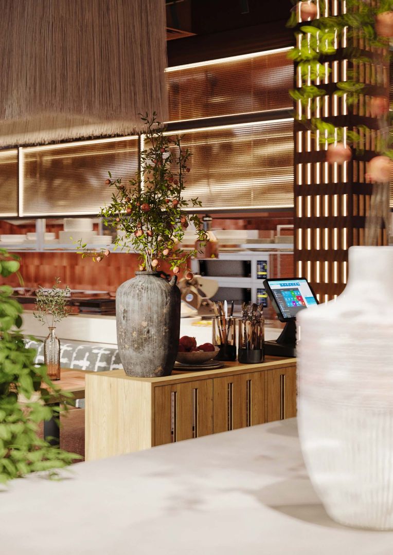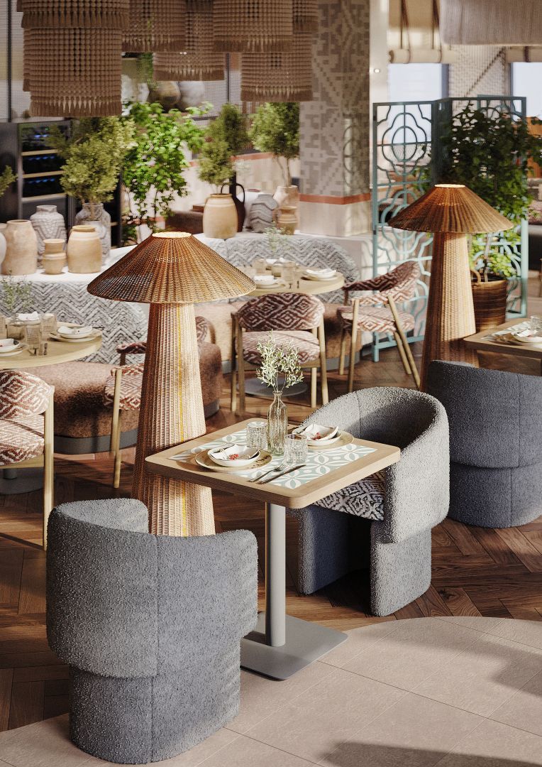 Это четвертый ресторан сети, который мы проектируем и за несколько лет существования предыдущих объектов, пришло время обновить концепцию для формата большого нарядного ресторана. Мы постарались пересобрать уже привычную концепцию и можно уверенно сказать, что получился новый современный, яркий грузинский ресторан.