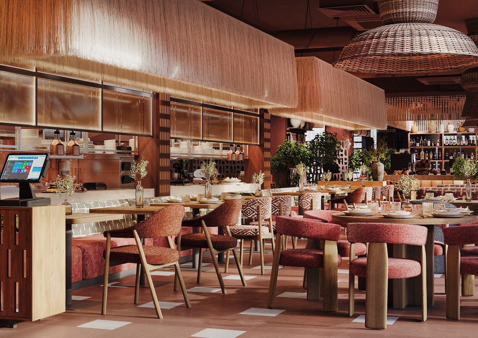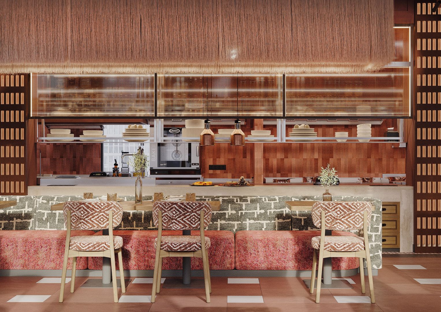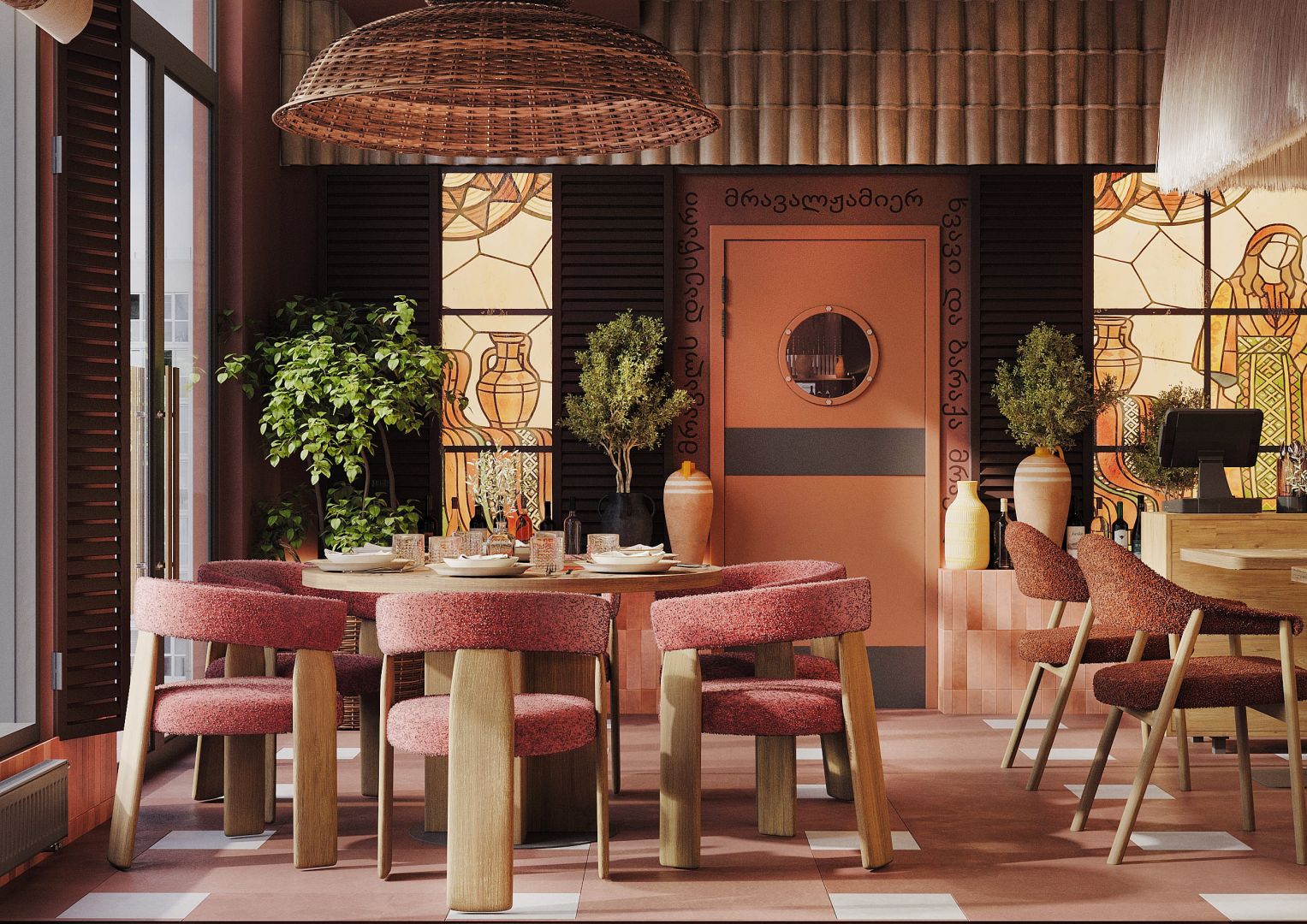 Это четвертый ресторан сети, который мы проектируем и за несколько лет существования предыдущих объектов, пришло время обновить концепцию для формата большого нарядного ресторана. Мы постарались пересобрать уже привычную концепцию и можно уверенно сказать, что получился новый современный, яркий грузинский ресторан.