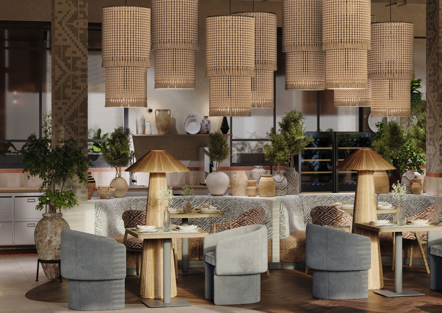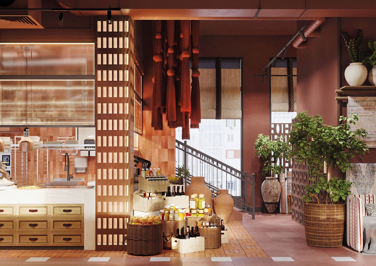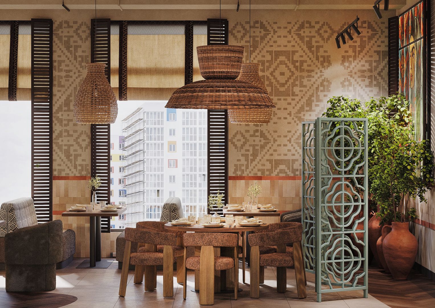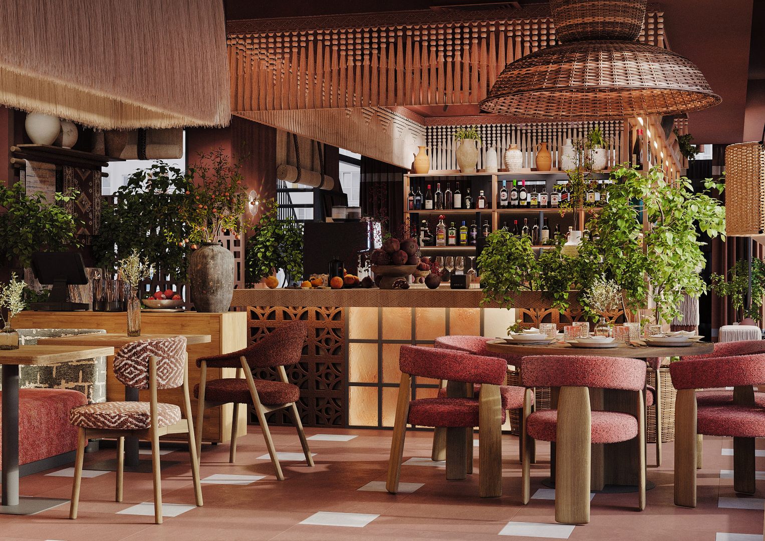 Это четвертый ресторан сети, который мы проектируем и за несколько лет существования предыдущих объектов, пришло время обновить концепцию для формата большого нарядного ресторана. Мы постарались пересобрать уже привычную концепцию и можно уверенно сказать, что получился новый современный, яркий грузинский ресторан.