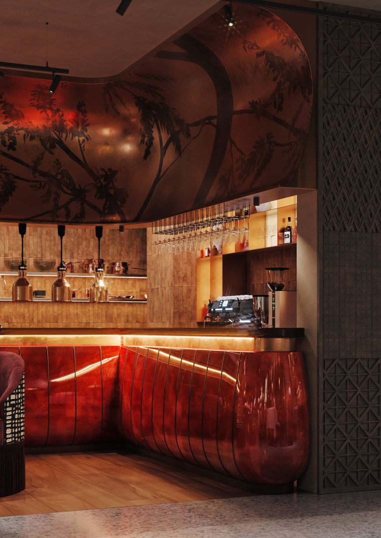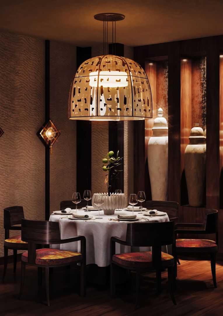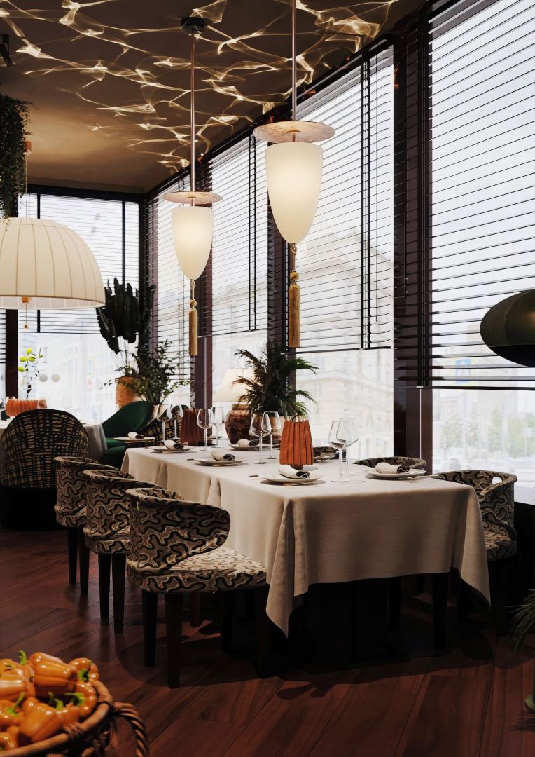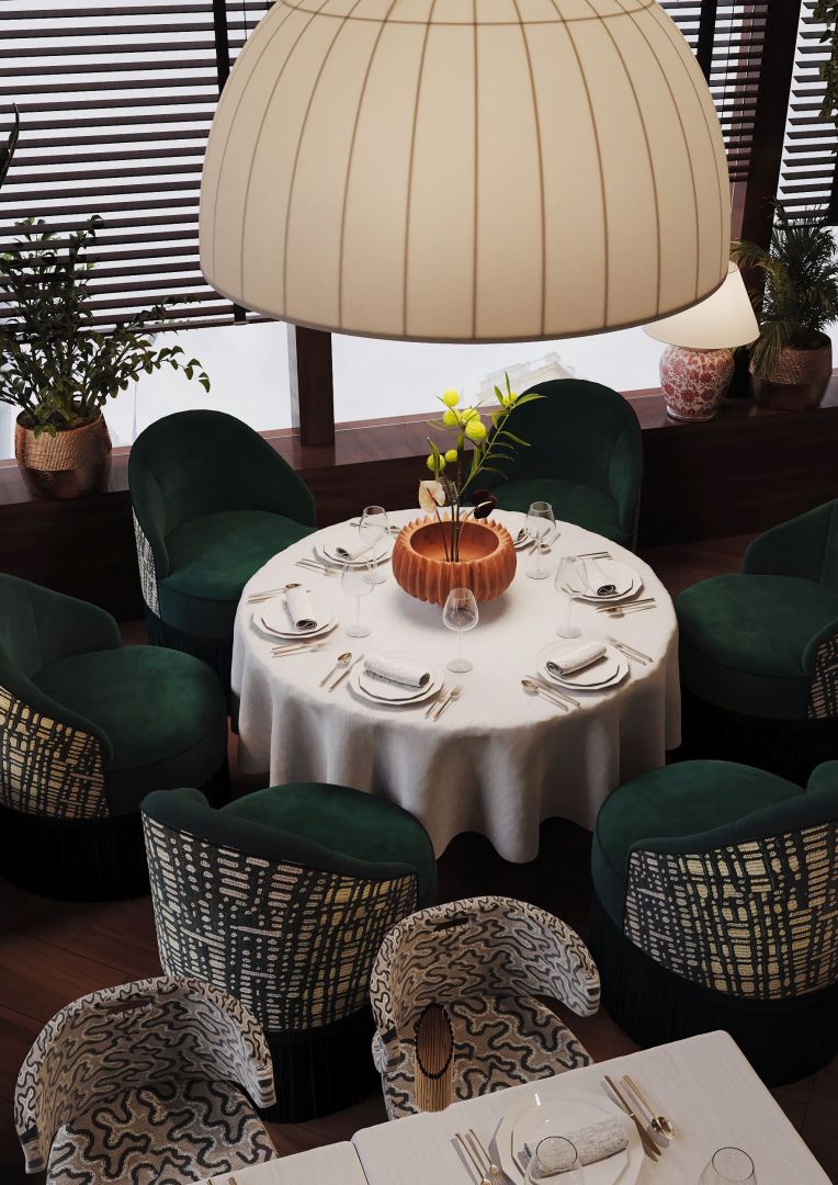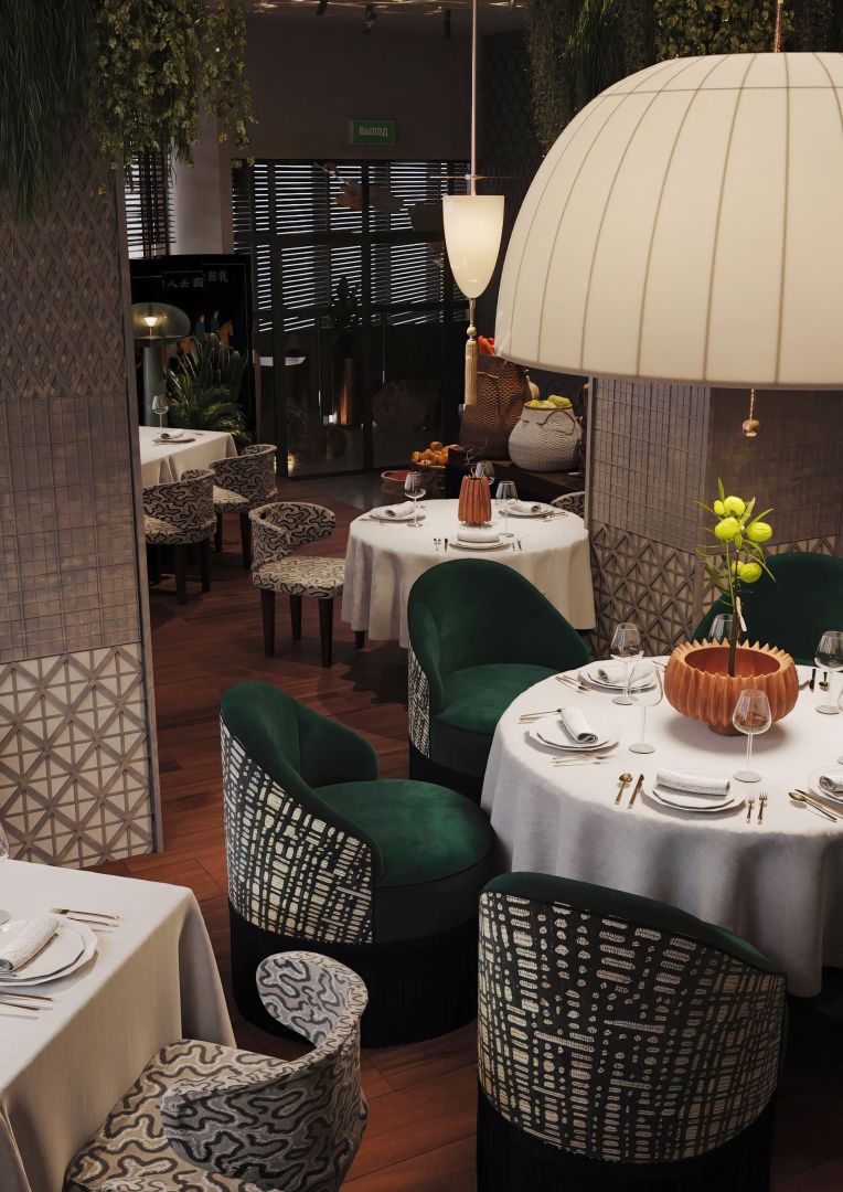 Здесь царит гармония роскоши и природности, искусства и комфорта. Этот ресторан — не просто место для ужина, а полноценный эстетический опыт, где каждый гость становится частью театра дизайна.
