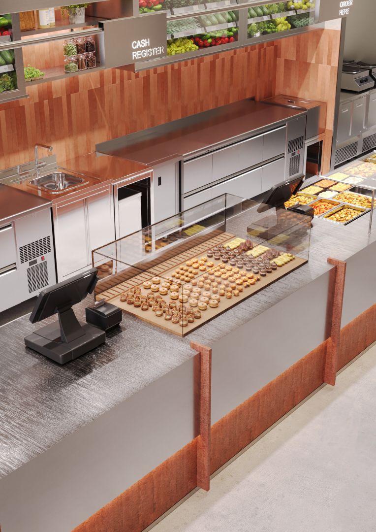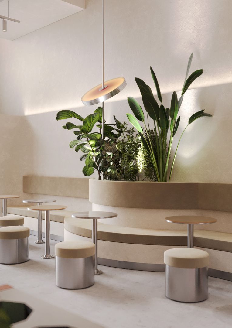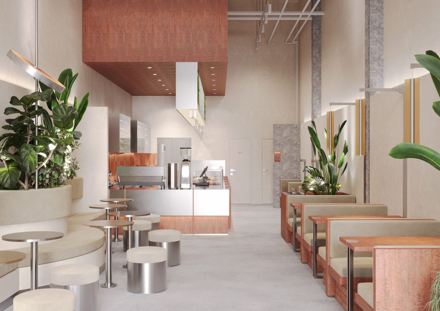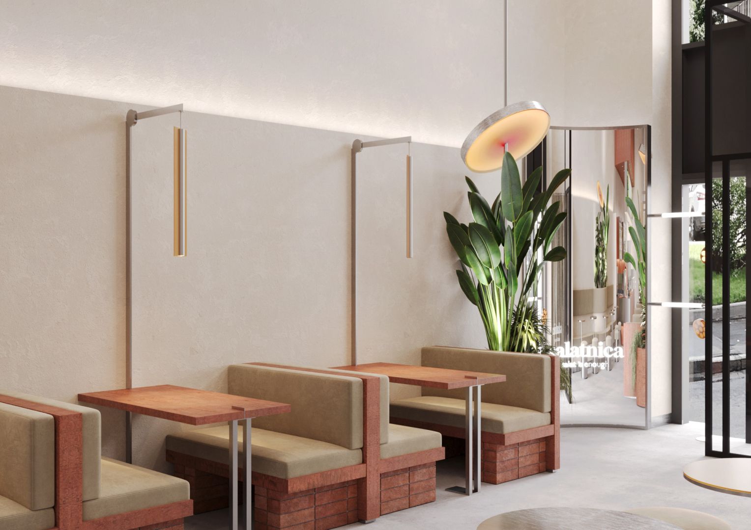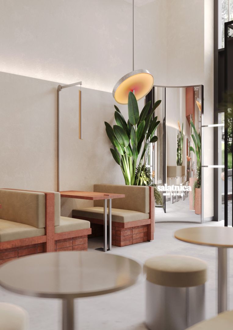 Концепция современного бистро с свежими салатами, боулами и напитками собственного приготовления. Основа концепции это минимализм, чистота форм и линий с яркими акцентами, что прекрасно отражает идеологию создателей этого проекта. Нами были разработаны островные зоны из нержавеющей стали для размещения самого важного — продукта, чтобы ничего не отвлекало внимание от главного. Использовали ее как символ чистоты и простоты составов блюд. Кирпич и дерево смягчили концепцию и добавили уюта.